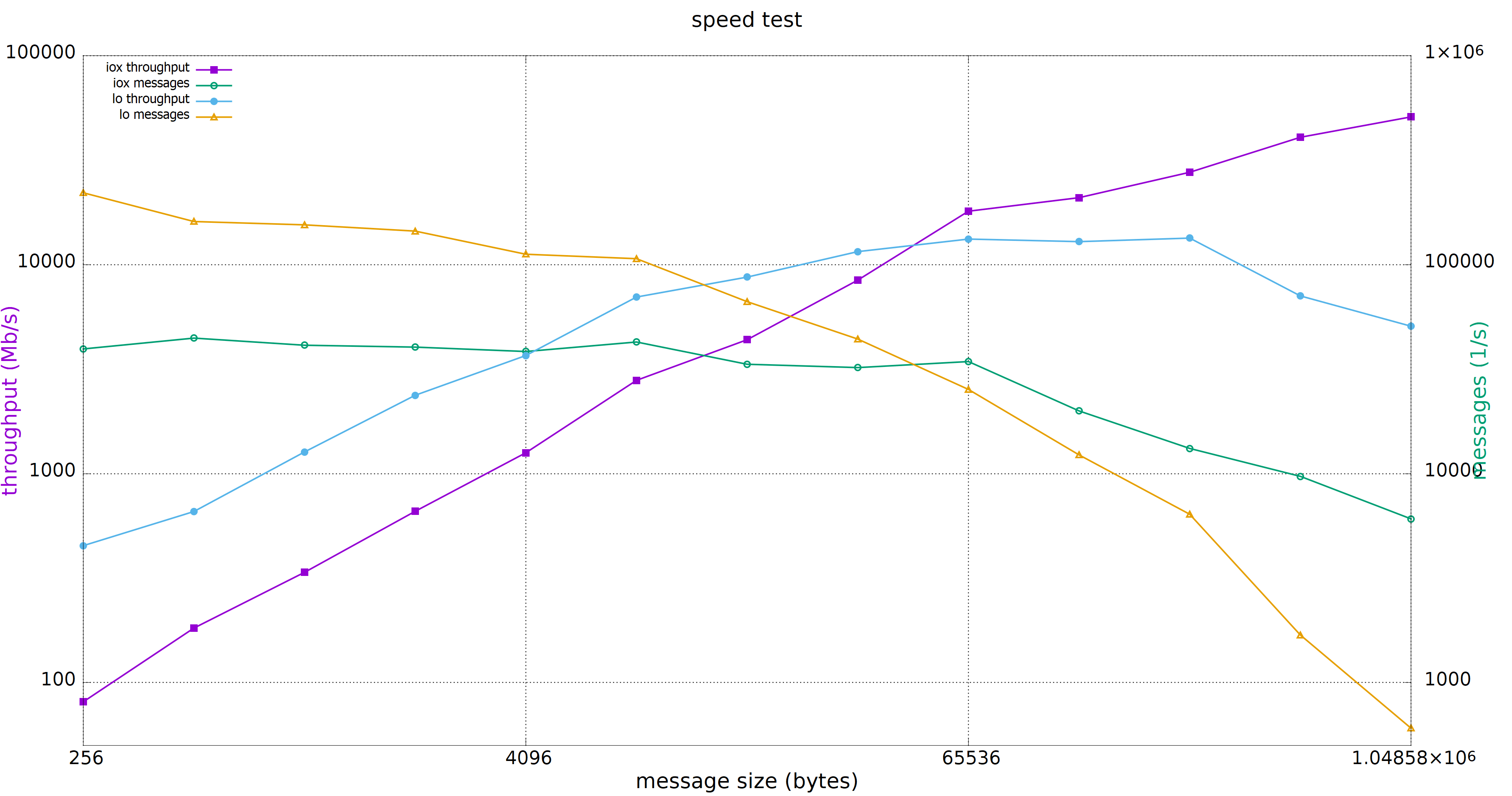 Both the publisher and subscriber must be given the same message type, which for this example is 16384 (the number of bytes in the message sent).
